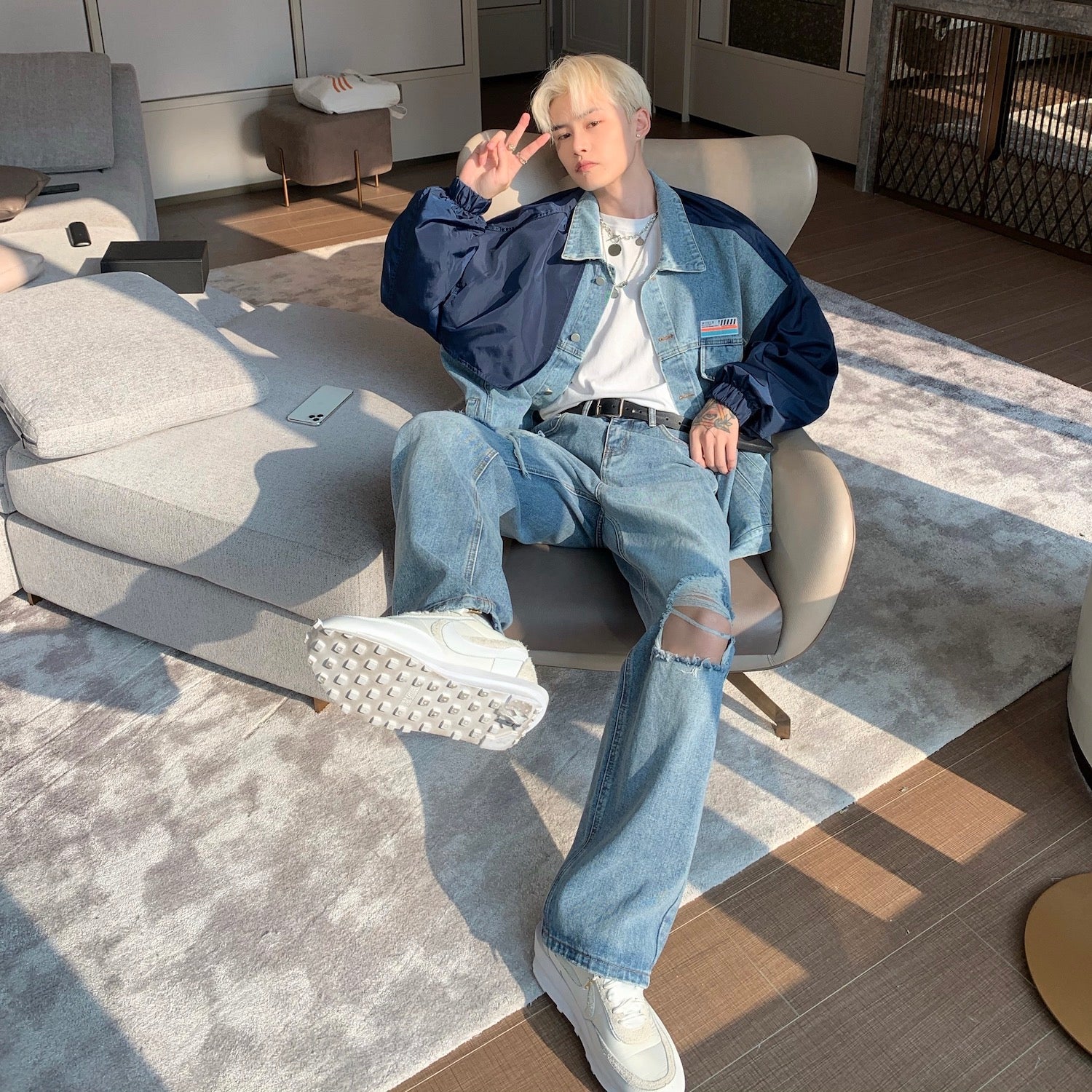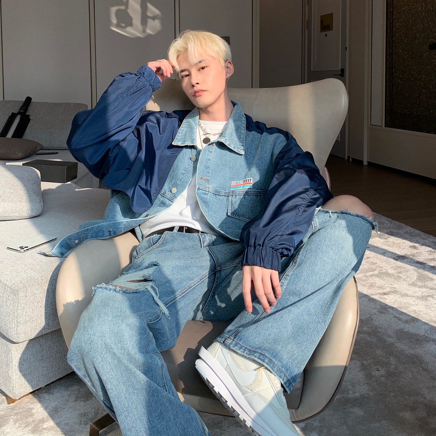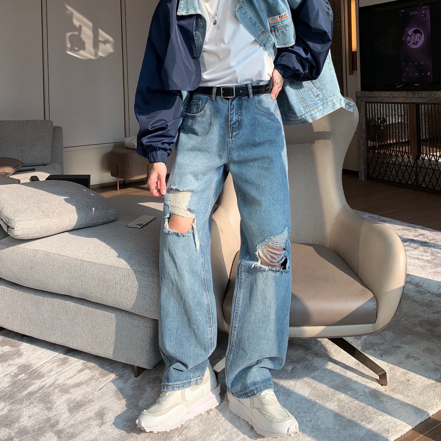 Men's Light Blue Ripped Denim Jeans